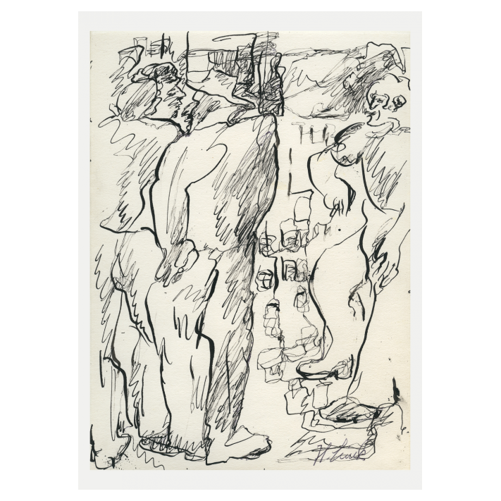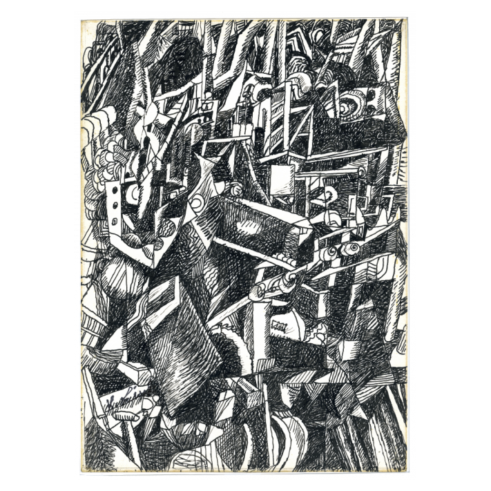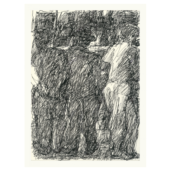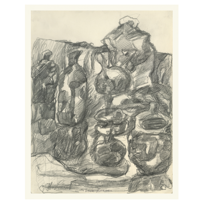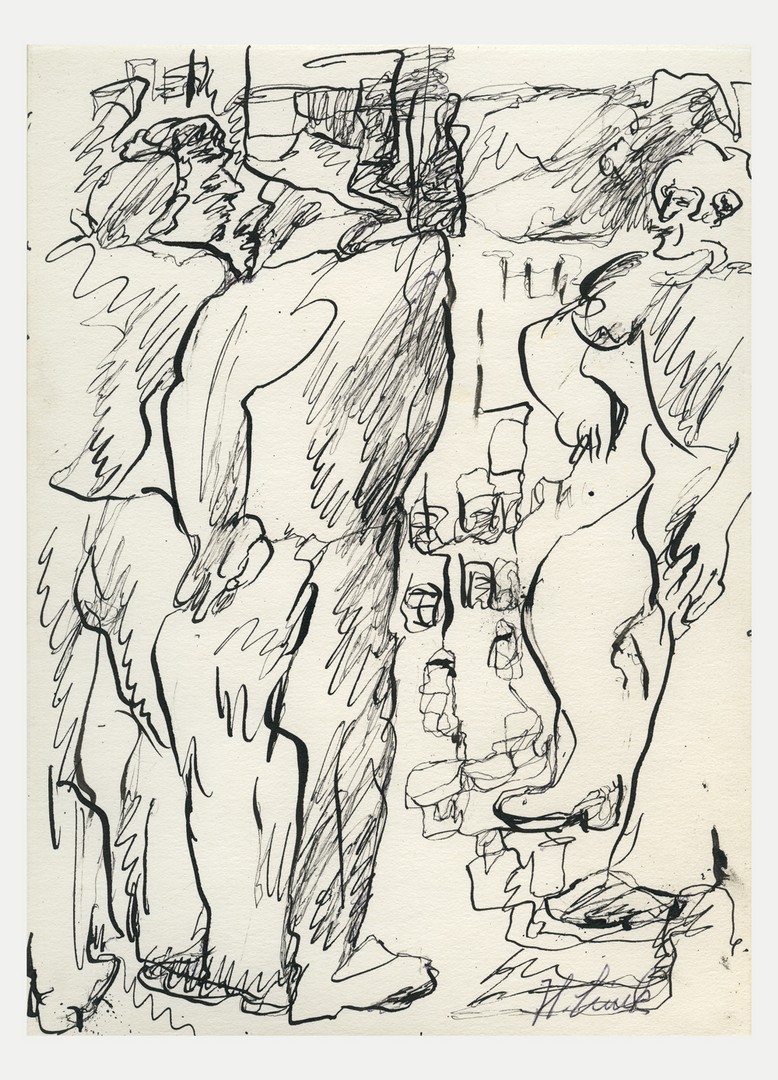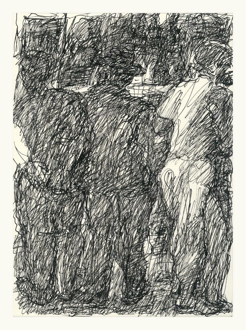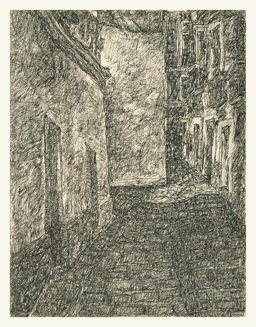 Dann können, vielleicht entsprechend der wesentlichen Struktur der Motive, aus dem Lineament kleinere Formen herauskristallisiert werden, die mit einer autonomen, vom Motiv unabhängigen Strichstruktur aufgefüllt werden. So entstehen große Gruppen kleiner Formen und Differenzierungen in den Grauwerten, jedoch in einer sehr gemäßigten Weise, die ein völlig anderes Bild ergeben als die früheren mit Hell- und Dunkel-Kontrasten versehenen Zeichnungen.