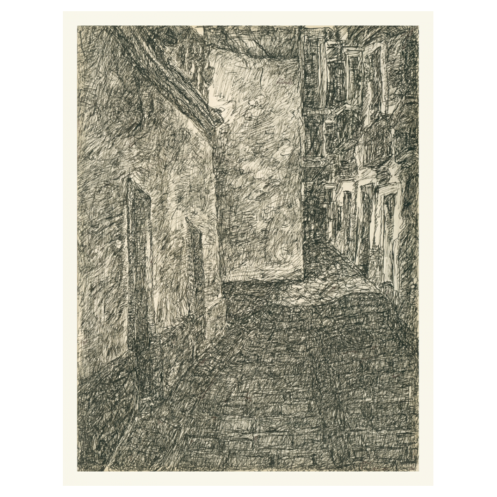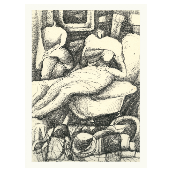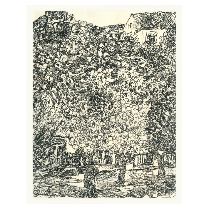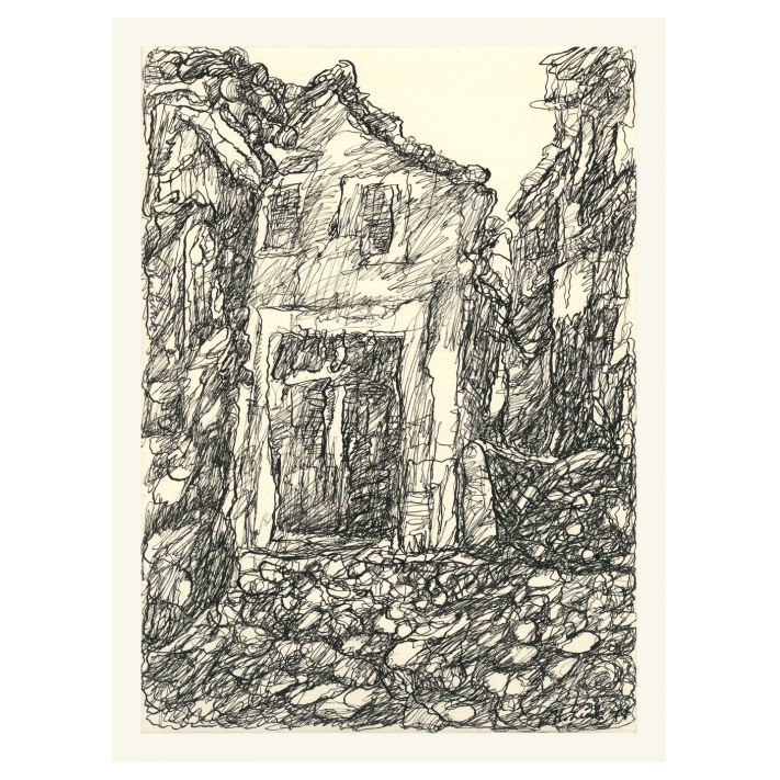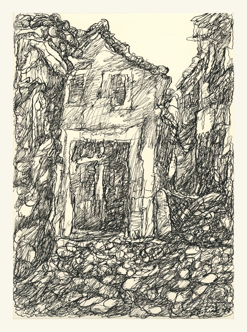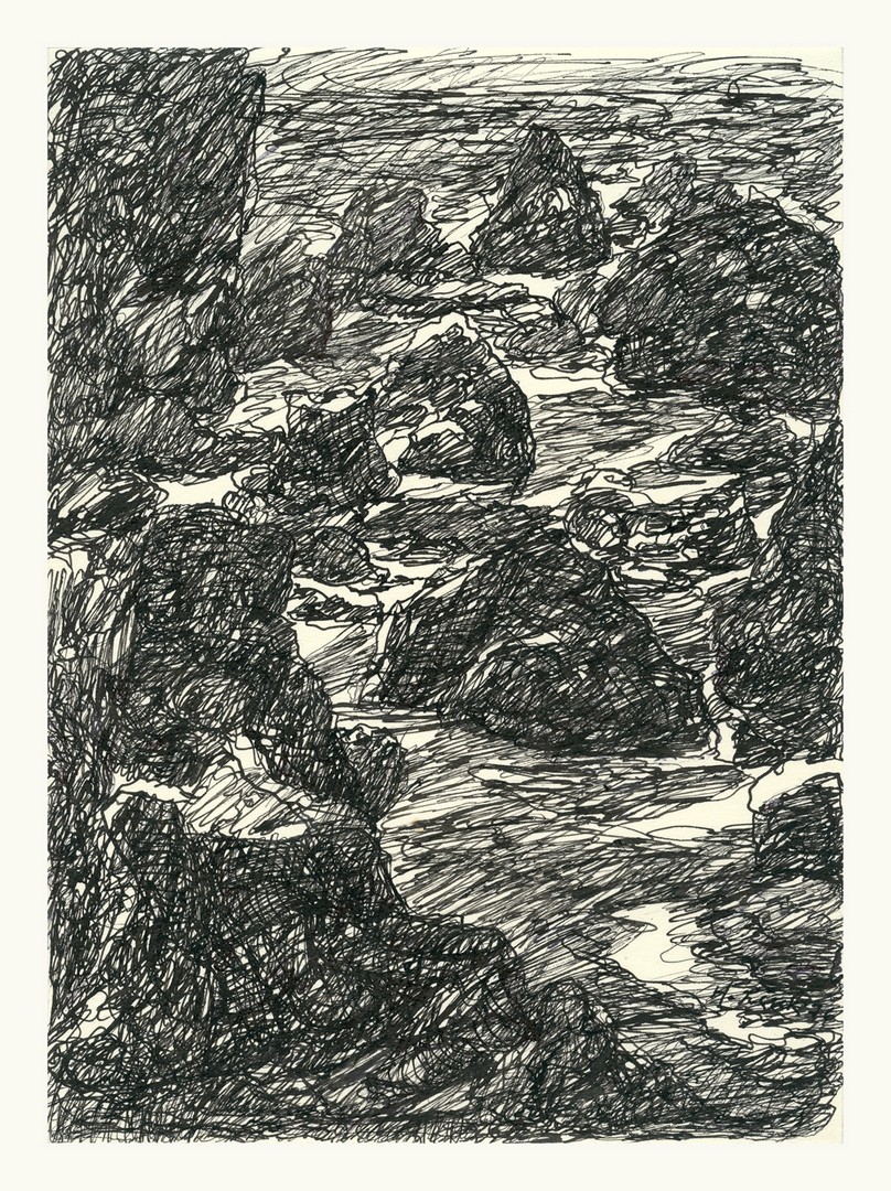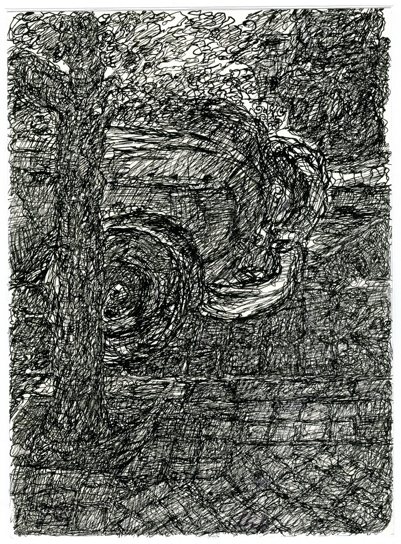 Dann können, vielleicht entsprechend der wesentlichen Struktur der Motive, aus dem Lineament kleinere Formen herauskristallisiert werden, die mit einer autonomen, vom Motiv unabhängigen Strichstruktur aufgefüllt werden. So entstehen große Gruppen kleiner Formen und Differenzierungen in den Grauwerten, jedoch in einer sehr gemäßigten Weise, die ein völlig anderes Bild ergeben als die früheren mit Hell- und Dunkel-Kontrasten versehenen Zeichnungen.